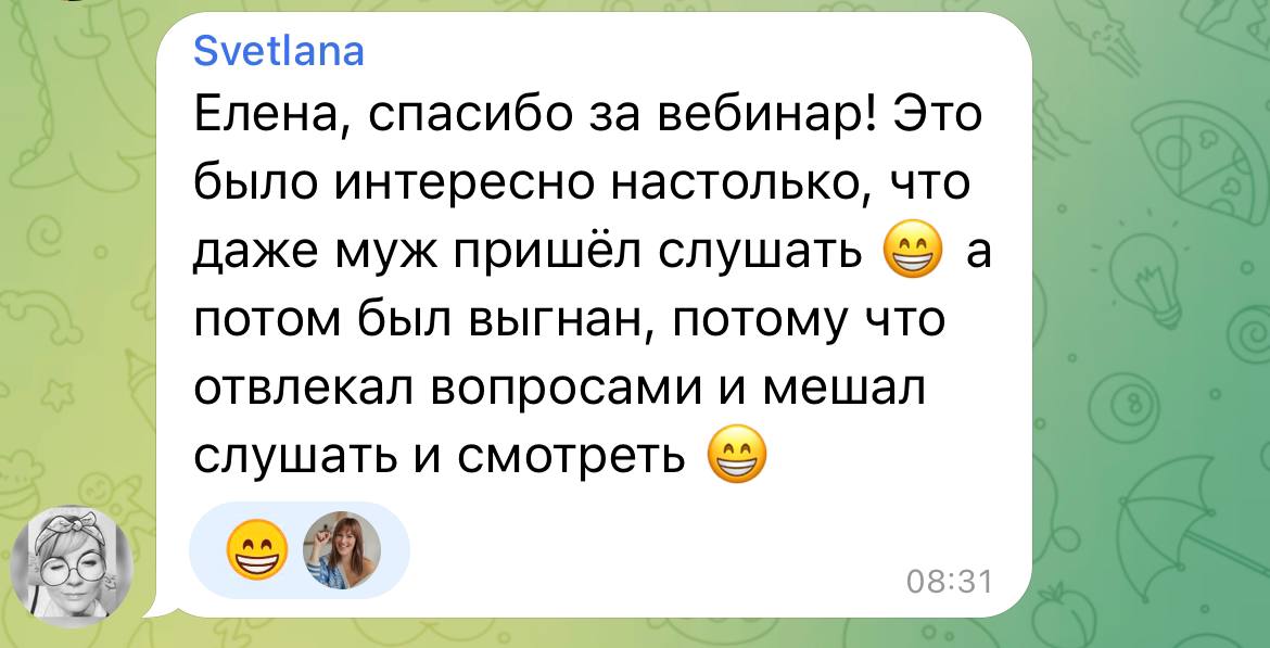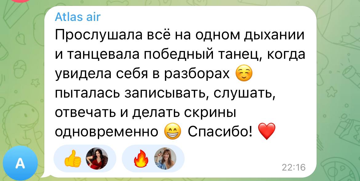 Результат: Ты получишь опыт и ответы лично от автора курса Елены Корбань